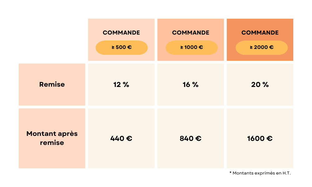 Nous vous proposons des remises supplémentaires en fonction de vos volumes d'achat.