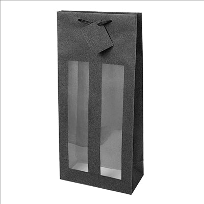10 U. SACS PORTE-BOUTEILLES AVEC FENÊTRE 350 G/M2 18+8,8x38 CM NOIR KRAFT (1 UNITÉ)