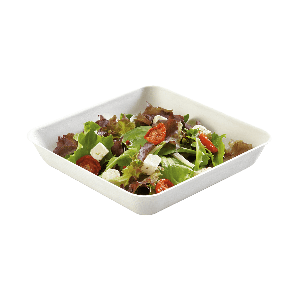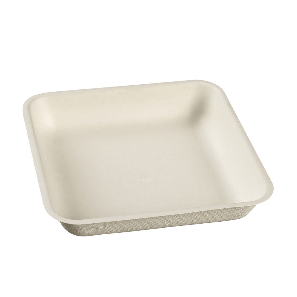Optez pour cette assiette carrée en pulpe de canne pour une solution écologique et esthétique, tout en profitant de sa praticité au quotidien.