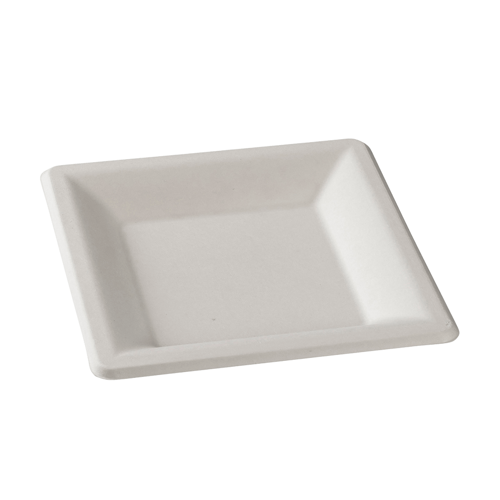 Assiette carrée en pulpe de canne - Blanc - 200x200x10 mm