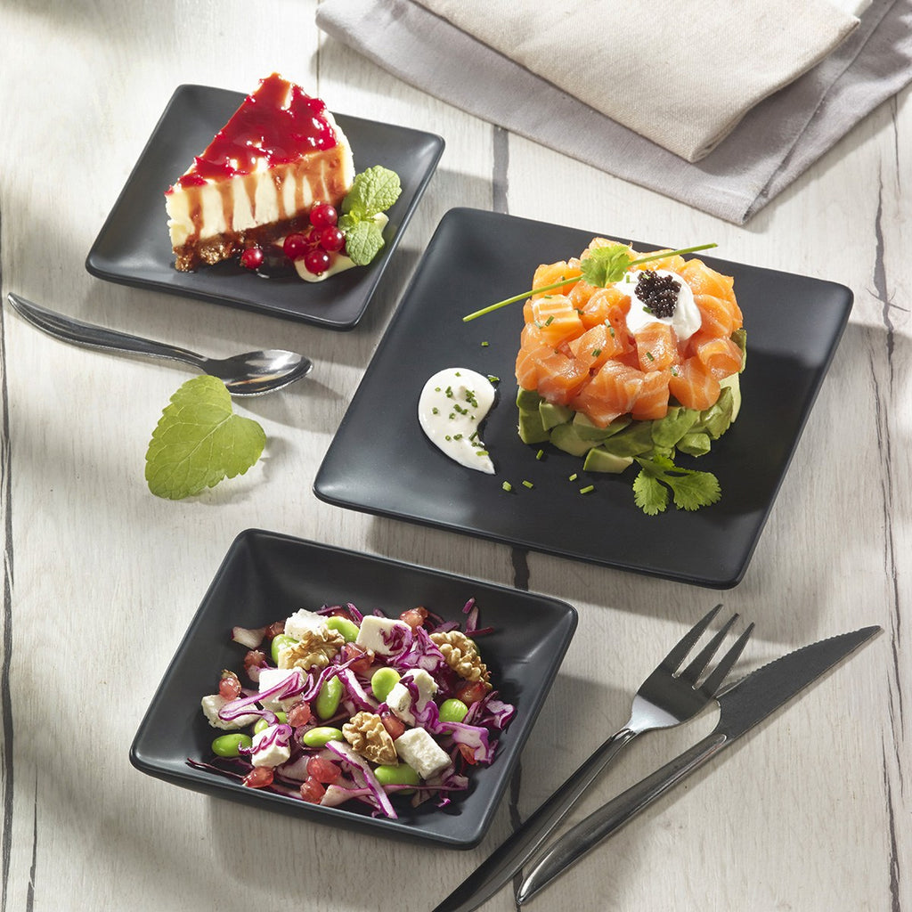 Assiette en céramique noire 110x110x14 mm - Gamme Fluid'