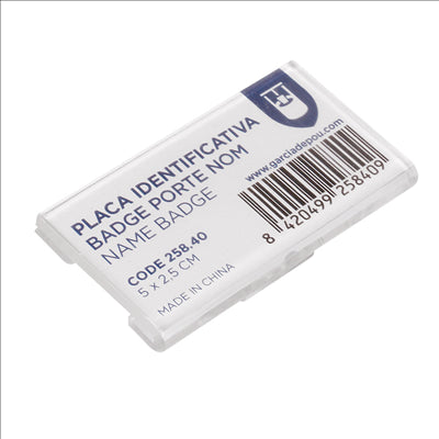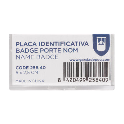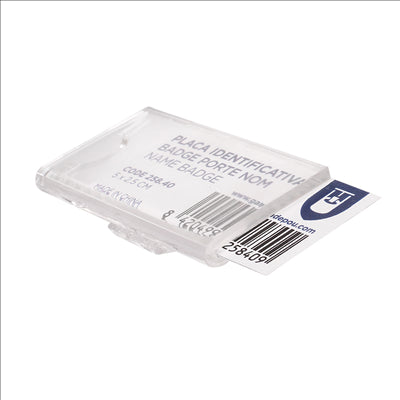 BADGE PORTE NOM 5x2,5 CM TRANSPARENT ACRYLIQUE (25 UNITÉS)