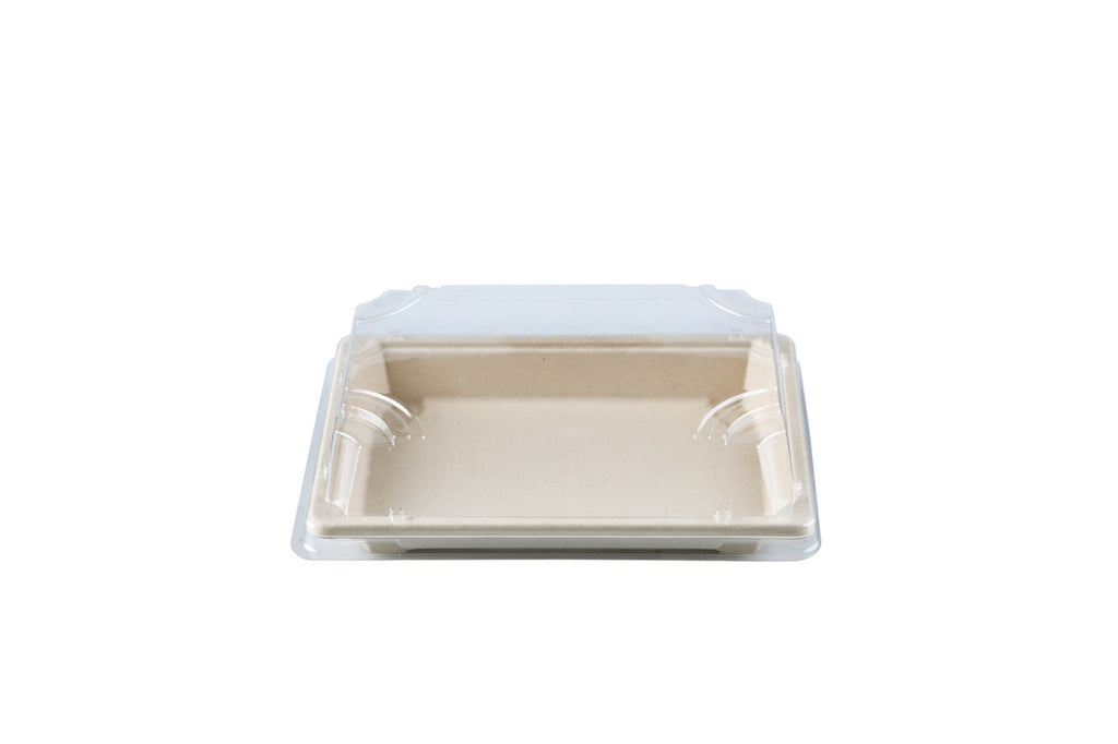 Barquette Sushi crème en canne à sucre + couvercle antibuée en PET 16 x 11,5 cm - 250 unités