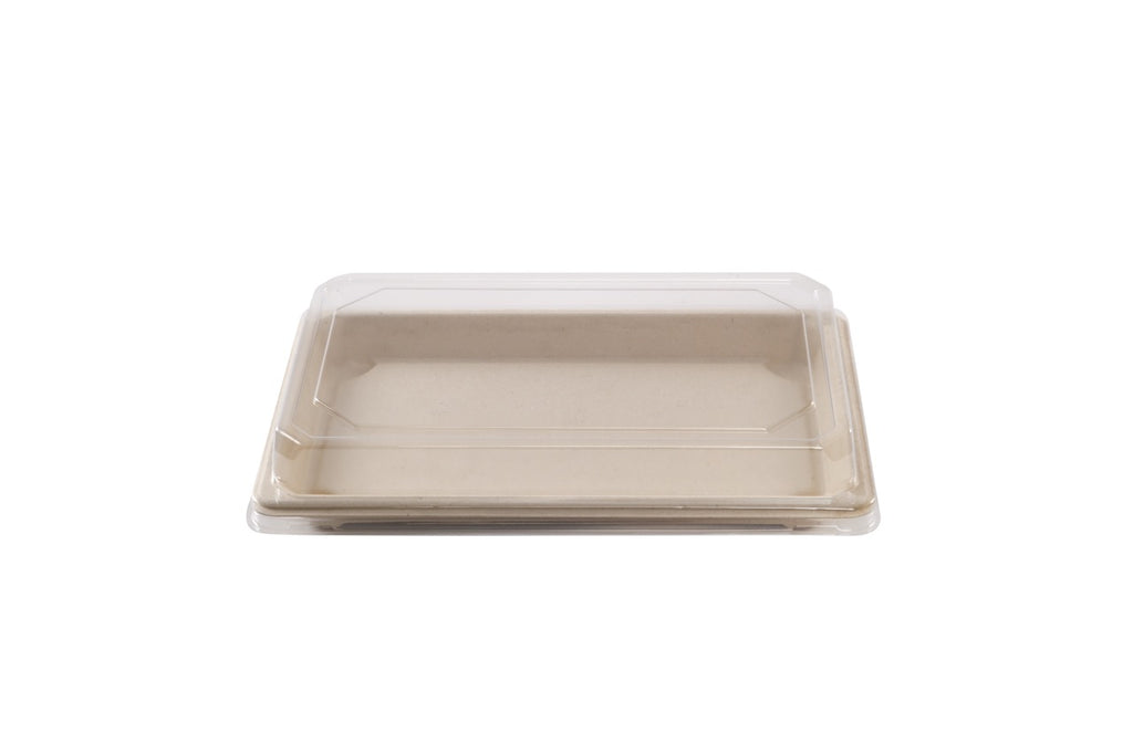 Barquette Sushi crème en canne à sucre + couvercle antibuée en PET 21,5 x 13,5 cm - 250 unités