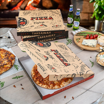 BOÎTES PIZZA 'ENJOY PIZZA' 'THEPACK' 330 G/M2 40x40x3,8 CM NATUREL CARTON ONDULÉ MICROCANAL (100 UNITÉS)