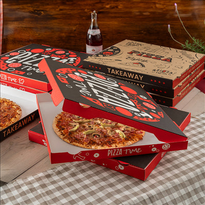 BOÎTES PIZZA 'PIZZA TIME' 'THEPACK' 330 G/M2 40x40x3,8 CM BLANC CARTON ONDULÉ MICROCANAL (100 UNITÉS)