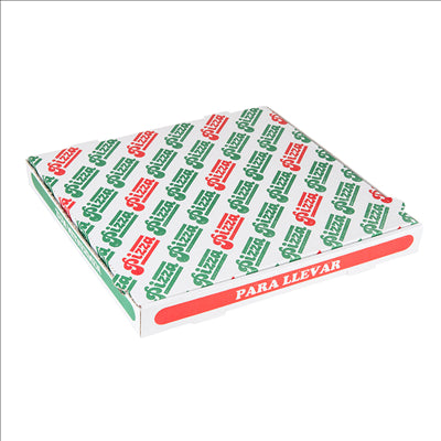 BOÎTES PIZZA 'THEPACK' 330 G/M2 33x33x3,8 CM BLANC CARTON ONDULÉ MICROCANAL (100 UNITÉS)
