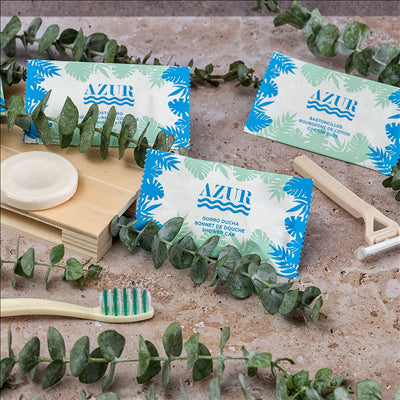 BONNETS DOUCHE EN SACHETS BLANC 'AZUR' 6X10,5 CM BLANC PE (250 UNITÉS)
