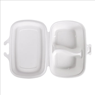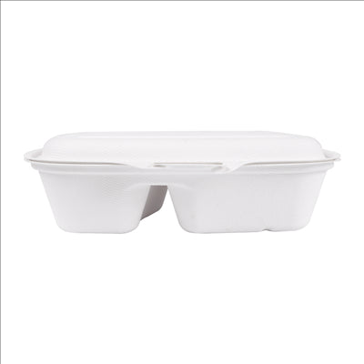 COQUILLES 2 COMPART. 'BIONIC' 900 ML 22,4x14x6 CM BLANC BAGASSE (400 UNITÉS)