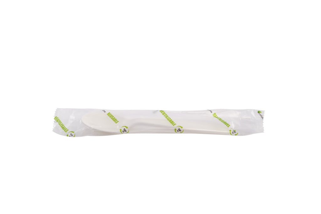 Cuillére blanche en maïs emballée individuellement 16 cm - 500 unités