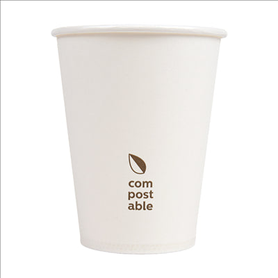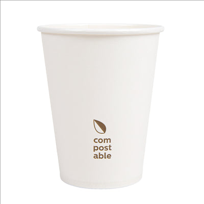 Le gobelet de 360 ml (12 oz) est une option écologique et pratique pour servir des boissons chaudes ou froides dans les cafés, restaurants et magasins de restauration à emporter. Fabriqué en carton robuste avec un revêtement compostable, ce gobelet est respectueux de l'environnement. Son design blanc affiche clairement son caractère compostable, avec une feuille symbolisant cet engagement écologique. Avec ses dimensions de 9 cm de diamètre supérieur, 6 cm de diamètre inférieur et 11 cm de hauteur, il convient parfaitement pour les grandes boissons comme les cafés allongés. Sa paroi simple assure une prise en main confortable et sécurisée. Idéal pour les établissements soucieux d'offrir une expérience client améliorée grâce à un produit pratique, responsable et attrayant.