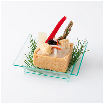MISES EN BOUCHE RÉUTILISABLES "CARRÉ" 6,3x6,3x1,5 CM VERT D'EAU PS (720 UNITÉS)