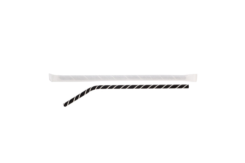 Paille en papier flexible noire et blanche 3 couches emballée individuellement Ø 0,6 x 21 cm - 6000 unités