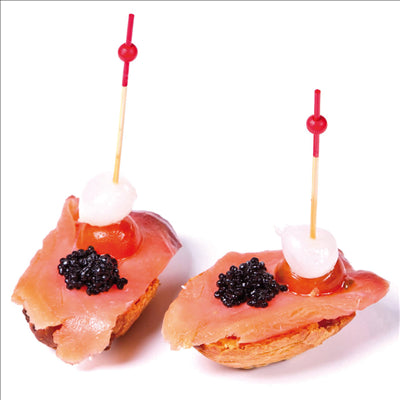 PIQUES "BOULE ROUGE" 12 (h) CM NATUREL BAMBOU (100 UNITÉS)