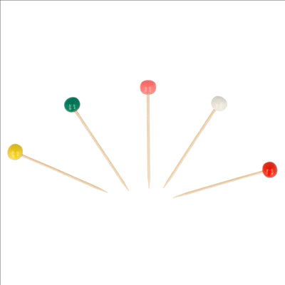 PIQUES BOULES COULEURS 6,5 (h) CM ASSORTI BAMBOU (144 UNITÉS)