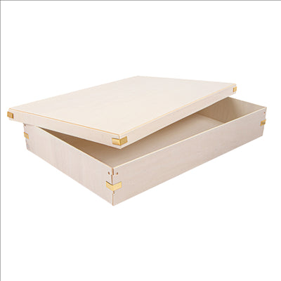 PLATEAUX RECTANGULAIRES AVEC COUVERCLE 'WOOD' 37,5x26x6,2 CM NATUREL BOIS (10 UNITÉS)