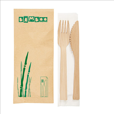 SET 3/1 FOURCHETTE, COUTEAU, SERVIETTE 17 CM NATUREL BAMBOU (50 UNITÉS)